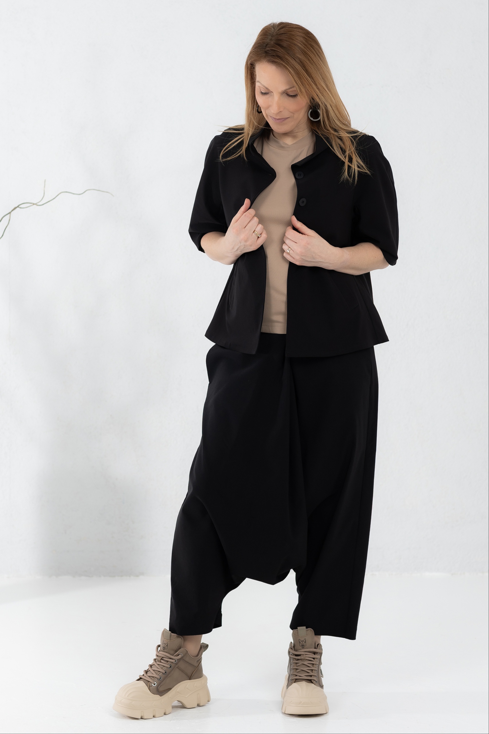 Tyylikäs musta väri tekee niistä erittäin monipuolisen valinnan, joka sopii sekä rentoihin että muodollisempiin tilaisuuksiin. Tyylikäs muotoilu yhdistettynä käytännölliseen leikkaukseen tekee niistä ihanteellisen valinnan jokapäiväiseen käyttöön. Yhdistä ne suosikkipuseroosi tai lisää tyylikäs pusero ja muutama asuste luodaksesi huomiota herättävän lookin, joka heijastaa omaa tyyliäsi.