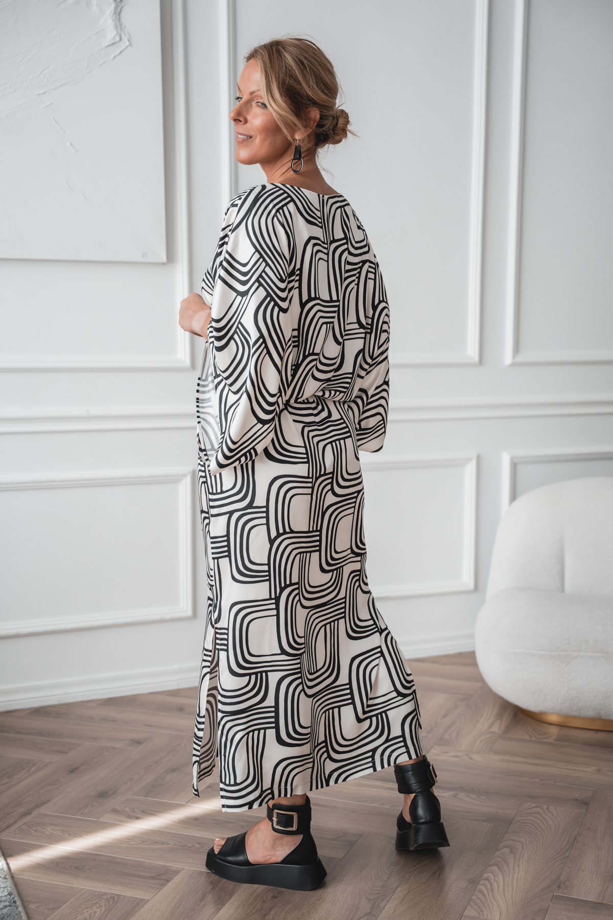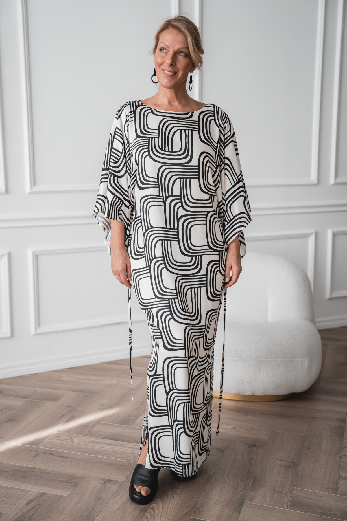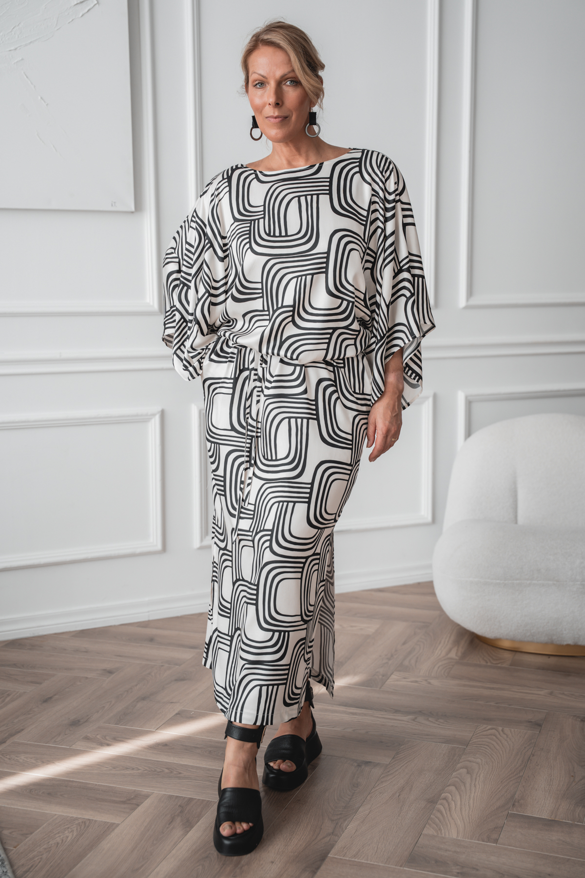 Furai, väljä mallinen kuosillinen viskoosimekko vyöllä
