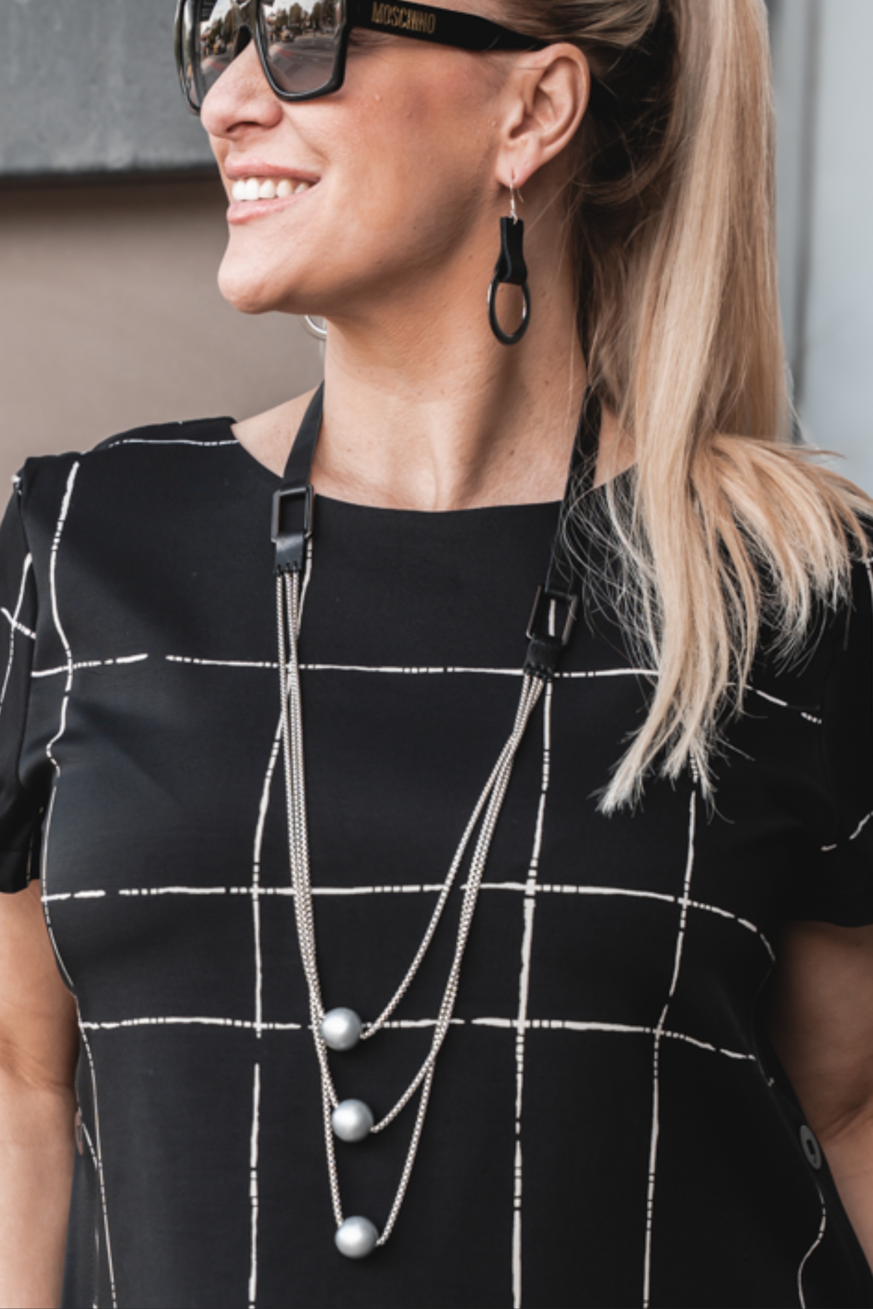 JustMusta-brändille mestarikäsityöläinen Kaja Kersonin erityisesti valmistama kaulakoru. Yksinkertainen mutta silmiinpistävä asuste, joka täydentää tyyliäsi.