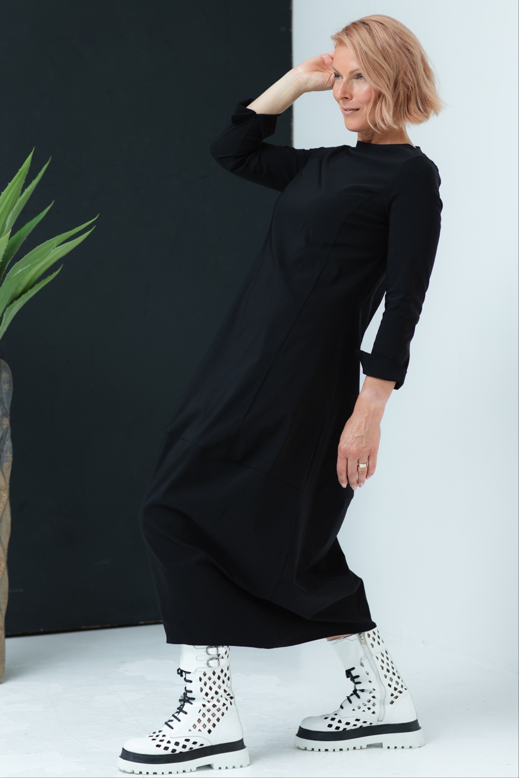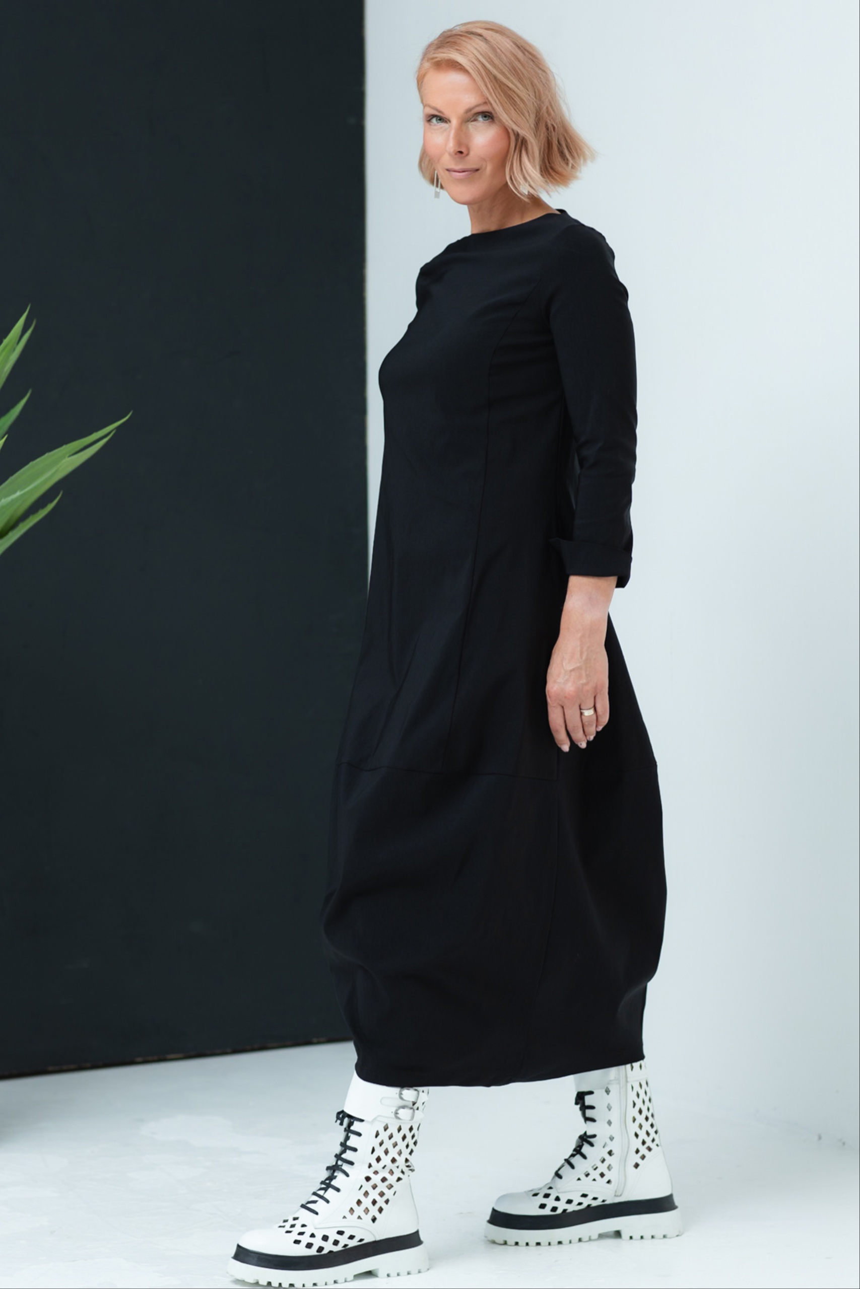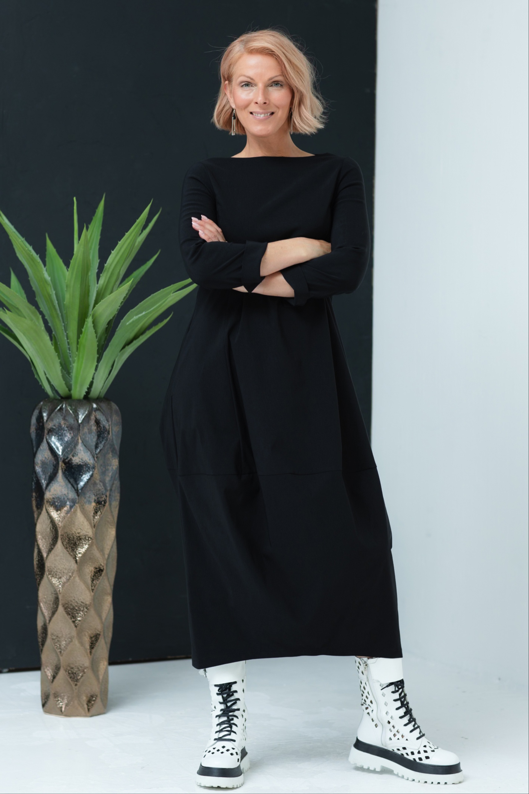 Akarui-mekko on täydellinen yhdistelmä eleganssia ja mukavuutta. Mekko on valmistettu viskoosikankaasta, joka takaa erinomaisen mukavuuden ja säilyttää kauniin muotonsa koko päivän ajan. Tämä moderni pallomekko on suunniteltu ajattoman muodin, tyylin ja liikkumisvapauden huomioon ottaen. Mekon minimalistinen ja huolellisesti suunniteltu malli korostaa käyttäjänsä vartaloa. Midi-pituus sopii sekä toimistoon että muodollisempiin tilaisuuksiin, joten se on monipuolinen lisä vaatekaappiisi. Yhdistä mekko kontrastisiin asusteisiin tai pidä look minimalistisena, jotta mekko pääsee todella loistamaan. Se on täydellinen valinta muotitietoisille naisille, jotka rakastavat ainutlaatuista tyyliä.