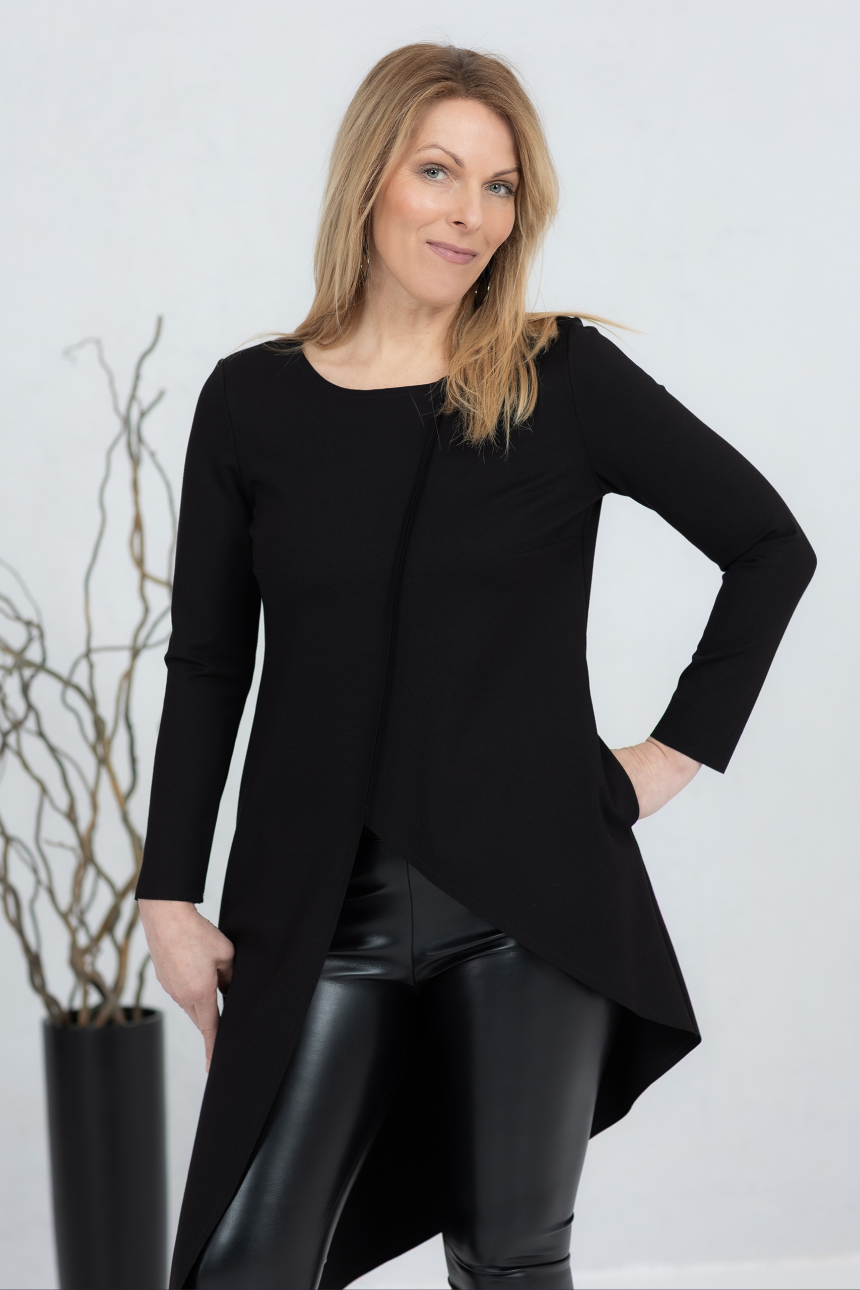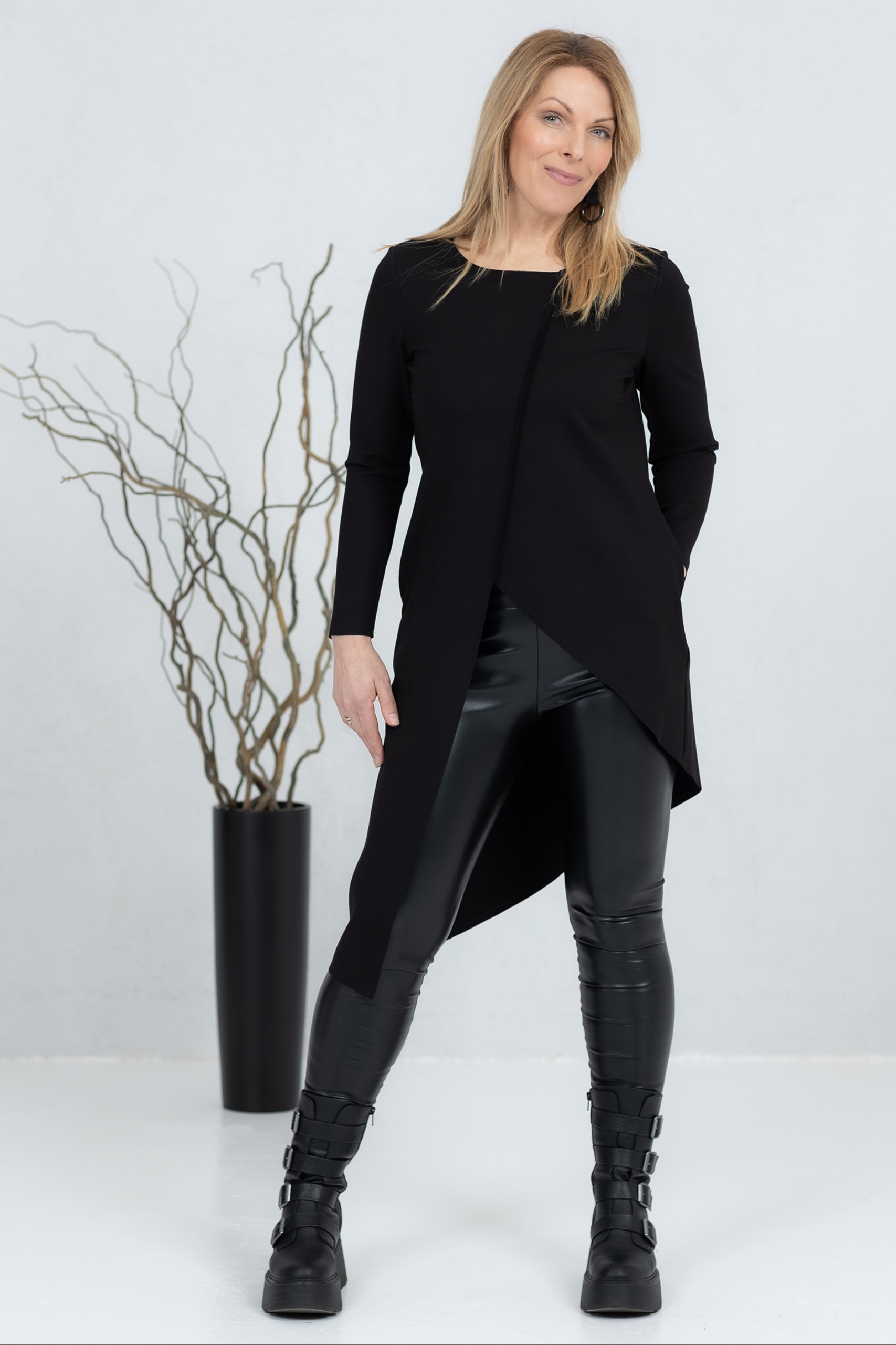 Pitkä epäsymmetrinen tunika Seiko, musta