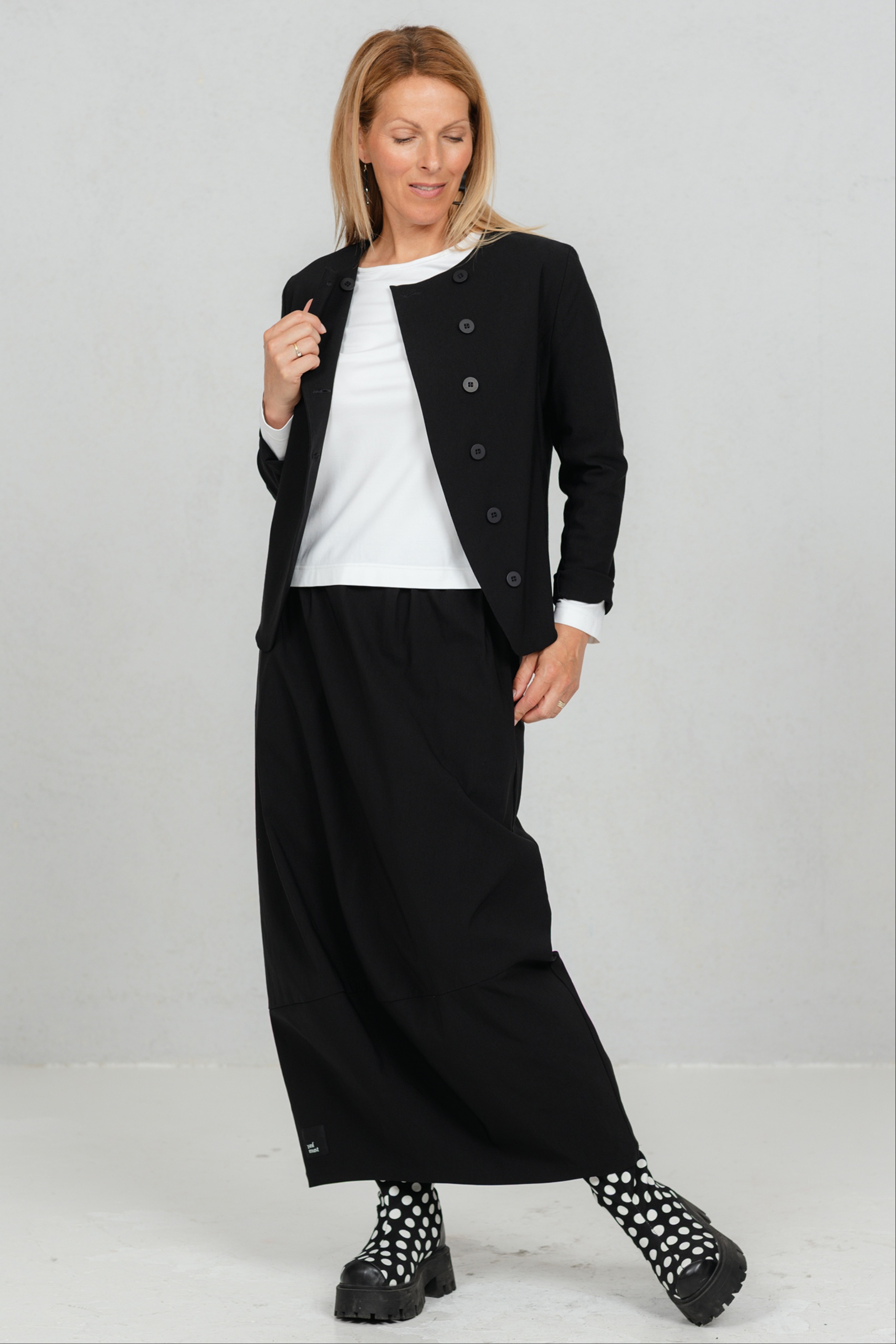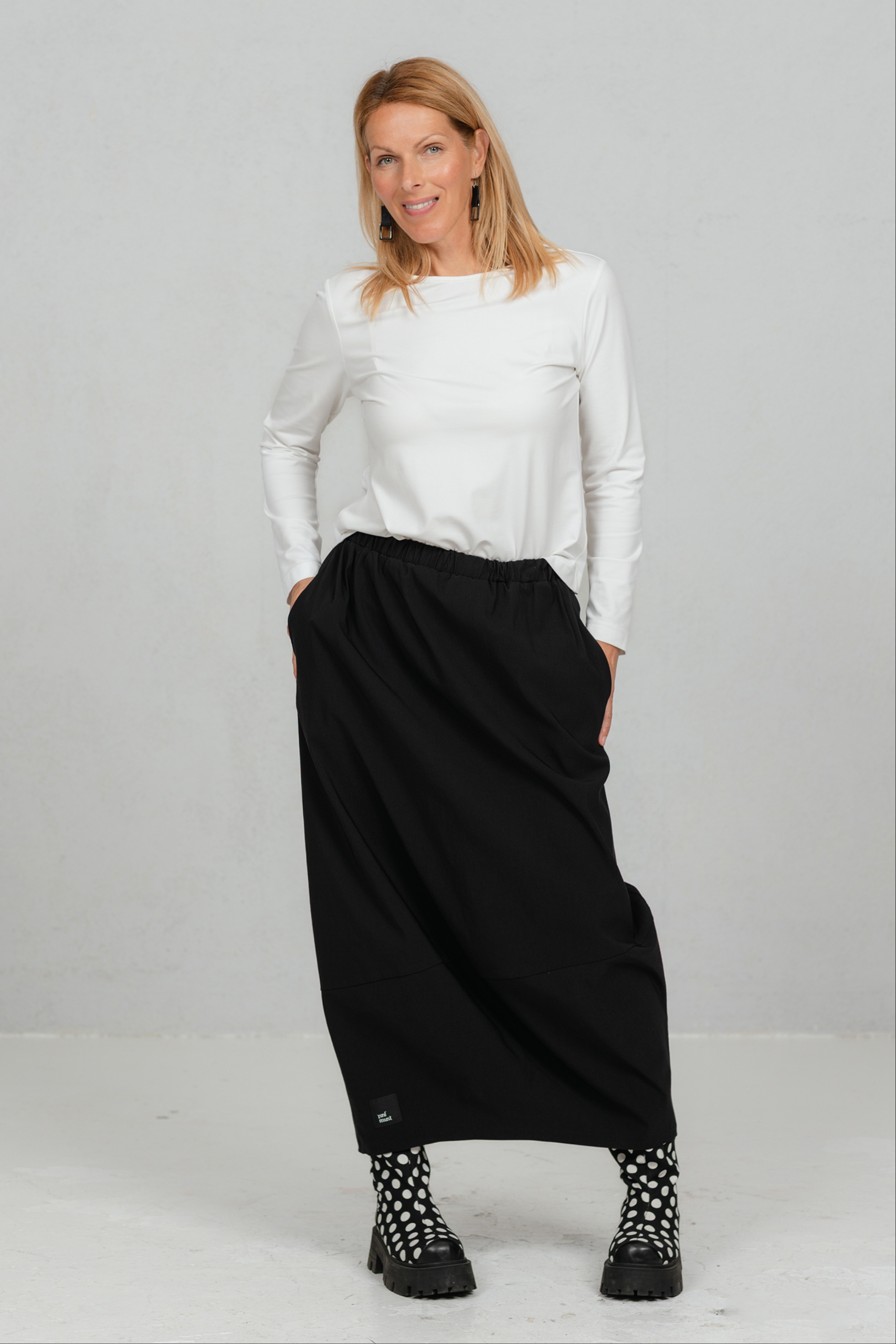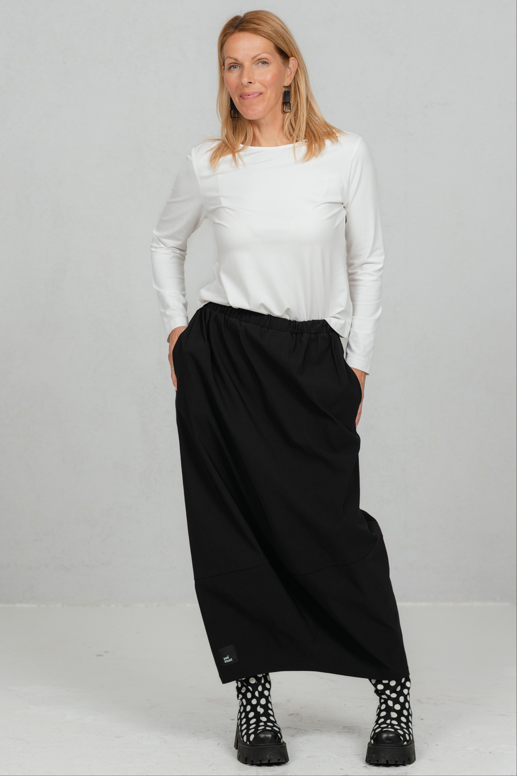 Hame, joka liikkuu mukanasi jokaisella askeleella ja lisää sulavuutta ja tyylikkyyttä jokaiseen liikkeeseesi. Tämä tulppaanimallinen hame tarjoaa juuri sitä – leikkisää eleganssia yhdistettynä jokapäiväiseen mukavuuteen. Hameen mukava joustava vyötärönauha sopii täydellisesti jokaiseen vartaloon. Valmistettu mukavasta ja käytännöllisestä viskoosikankaasta, joka takaa kestävyyden ja helpon hoidon, tästä hameesta tulee varmasti uusi suosikkisi. Sen klassinen sävy tekee siitä ihanteellisen seuralaisen sekä toimistoon että iltamenoihin, ja se on riittävän monipuolinen sopimaan monien JustMusta-puseroiden ja -topien kanssa.