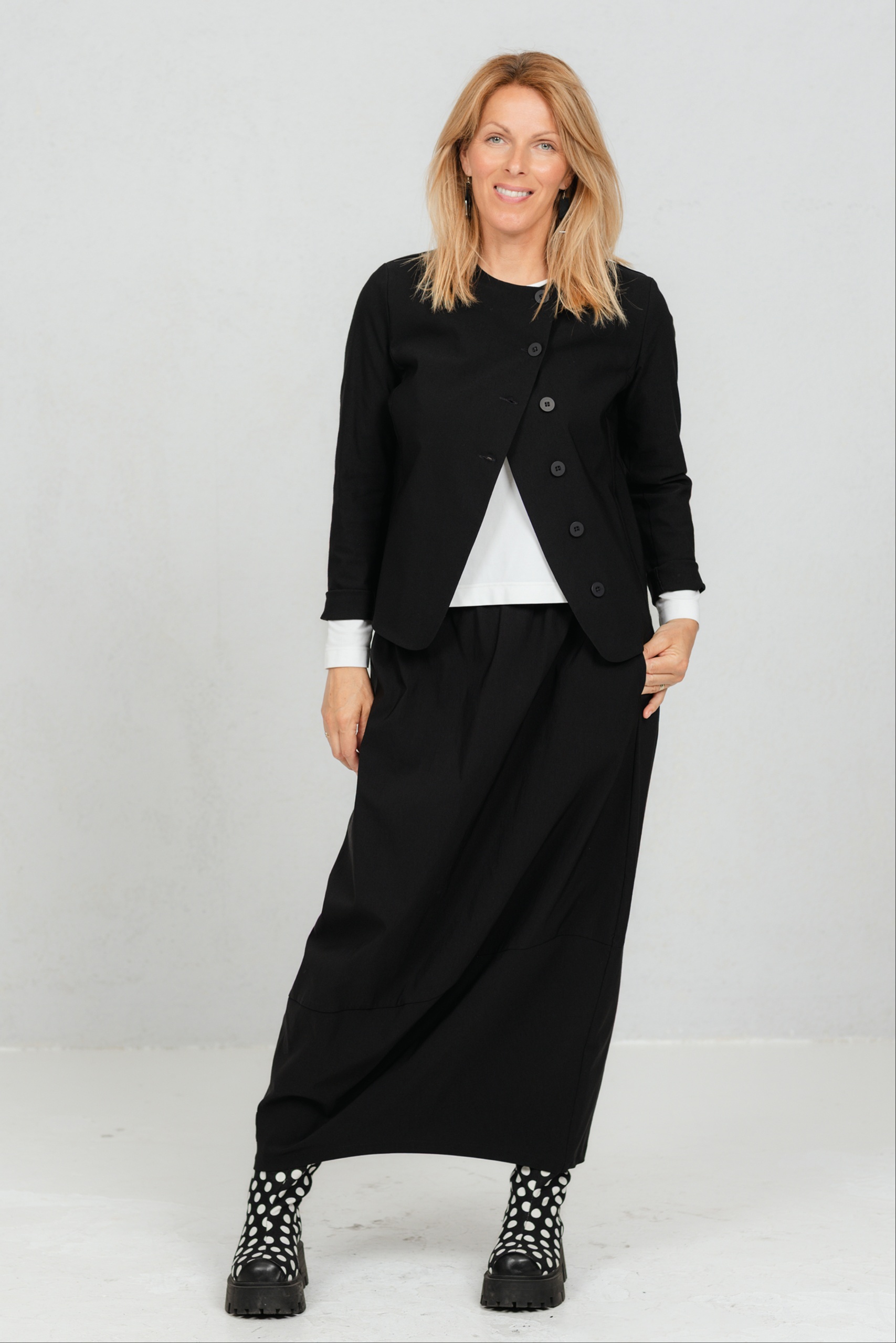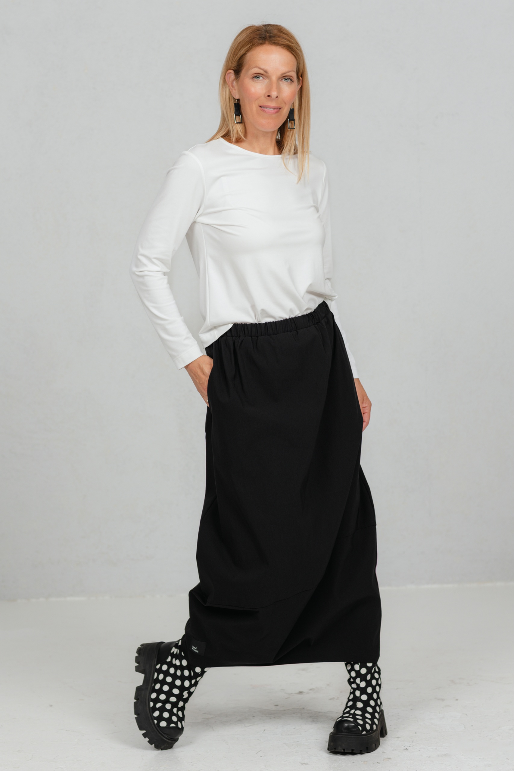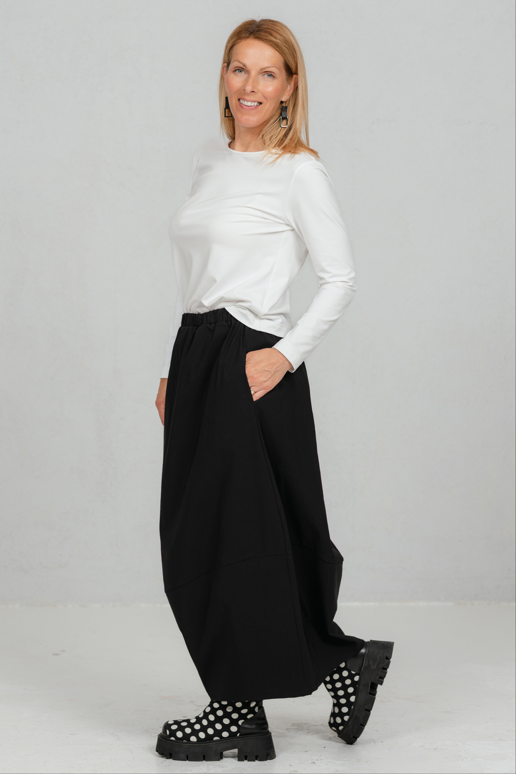 Hame, joka liikkuu mukanasi jokaisella askeleella ja lisää sulavuutta ja tyylikkyyttä jokaiseen liikkeeseesi. Tämä tulppaanimallinen hame tarjoaa juuri sitä – leikkisää eleganssia yhdistettynä jokapäiväiseen mukavuuteen. Hameen mukava joustava vyötärönauha sopii täydellisesti jokaiseen vartaloon. Valmistettu mukavasta ja käytännöllisestä viskoosikankaasta, joka takaa kestävyyden ja helpon hoidon, tästä hameesta tulee varmasti uusi suosikkisi. Sen klassinen sävy tekee siitä ihanteellisen seuralaisen sekä toimistoon että iltamenoihin, ja se on riittävän monipuolinen sopimaan monien JustMusta-puseroiden ja -topien kanssa.