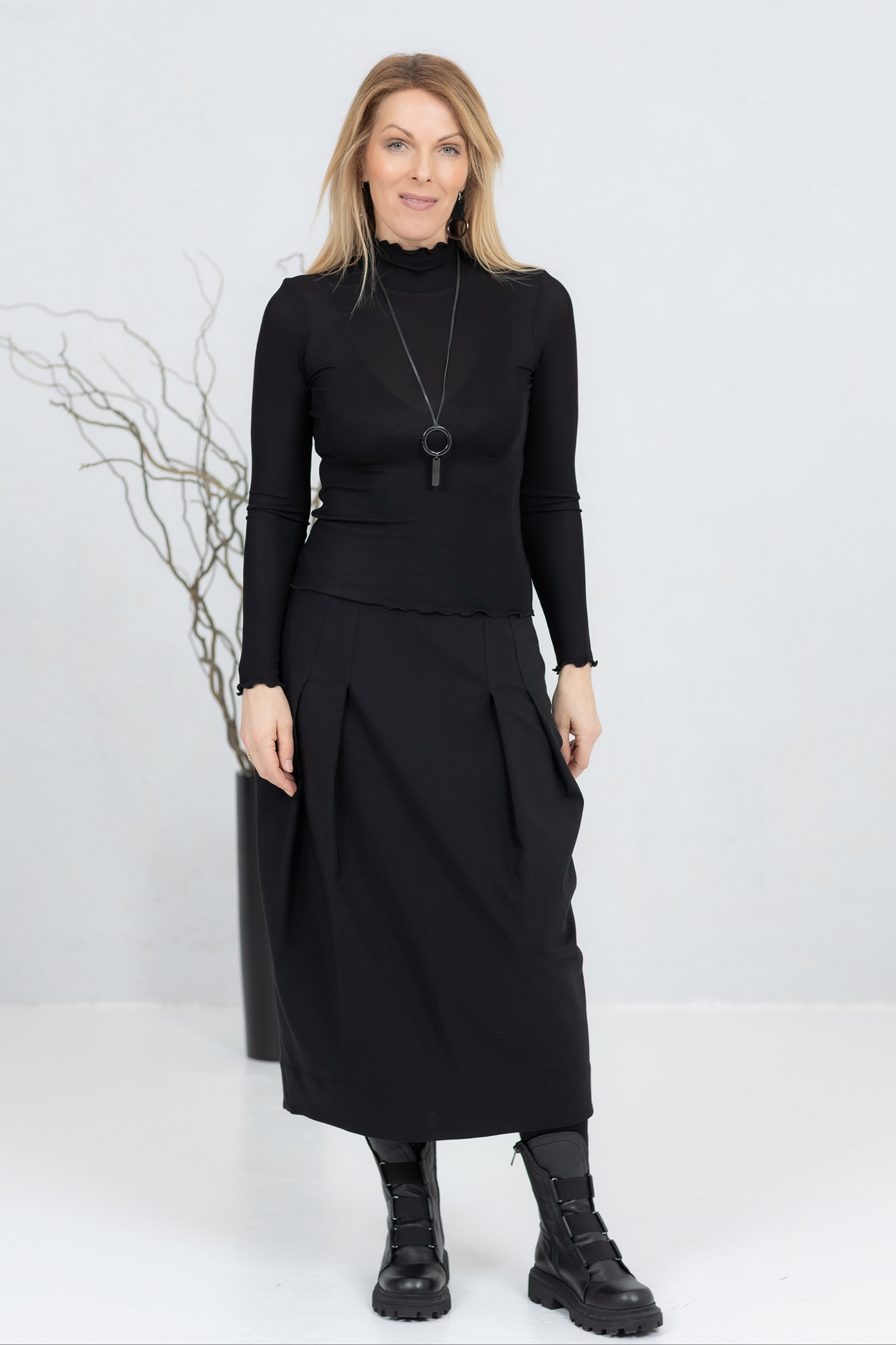 Korkeakauluksinen, poikkeuksellisen pehmeä viskoosipaita, joka on mukava käyttää yksinään tai muiden vaatteiden alla. Erittäin joustava ja ihoystävällinen kangas tekee tästä vaatteesta suosikkisi ja välttämättömän osan vaatekaappiasi.