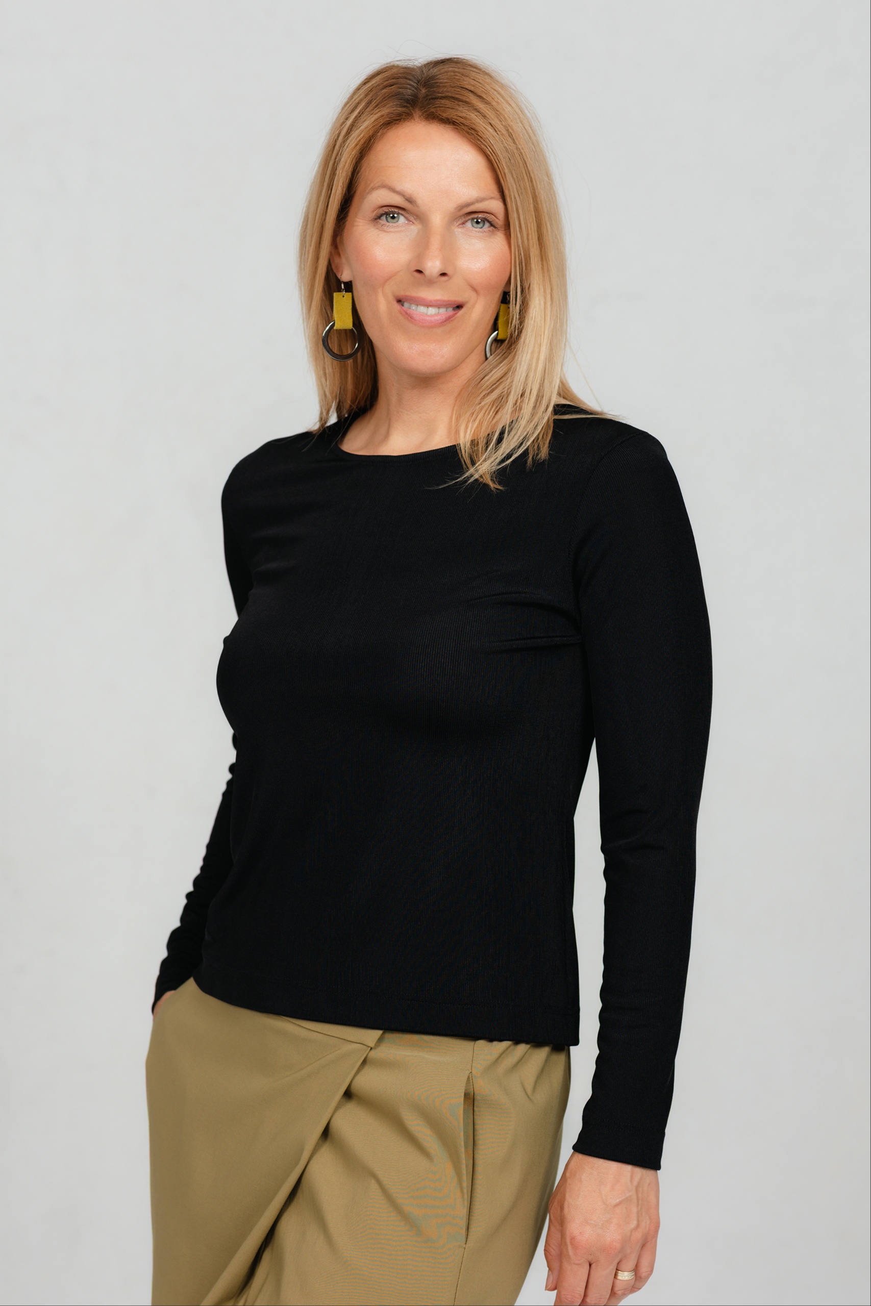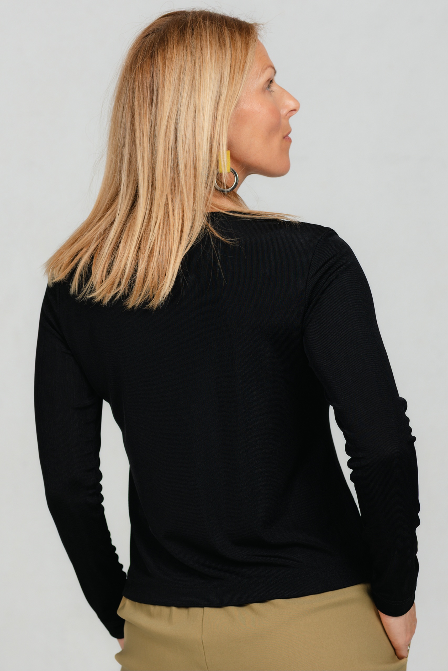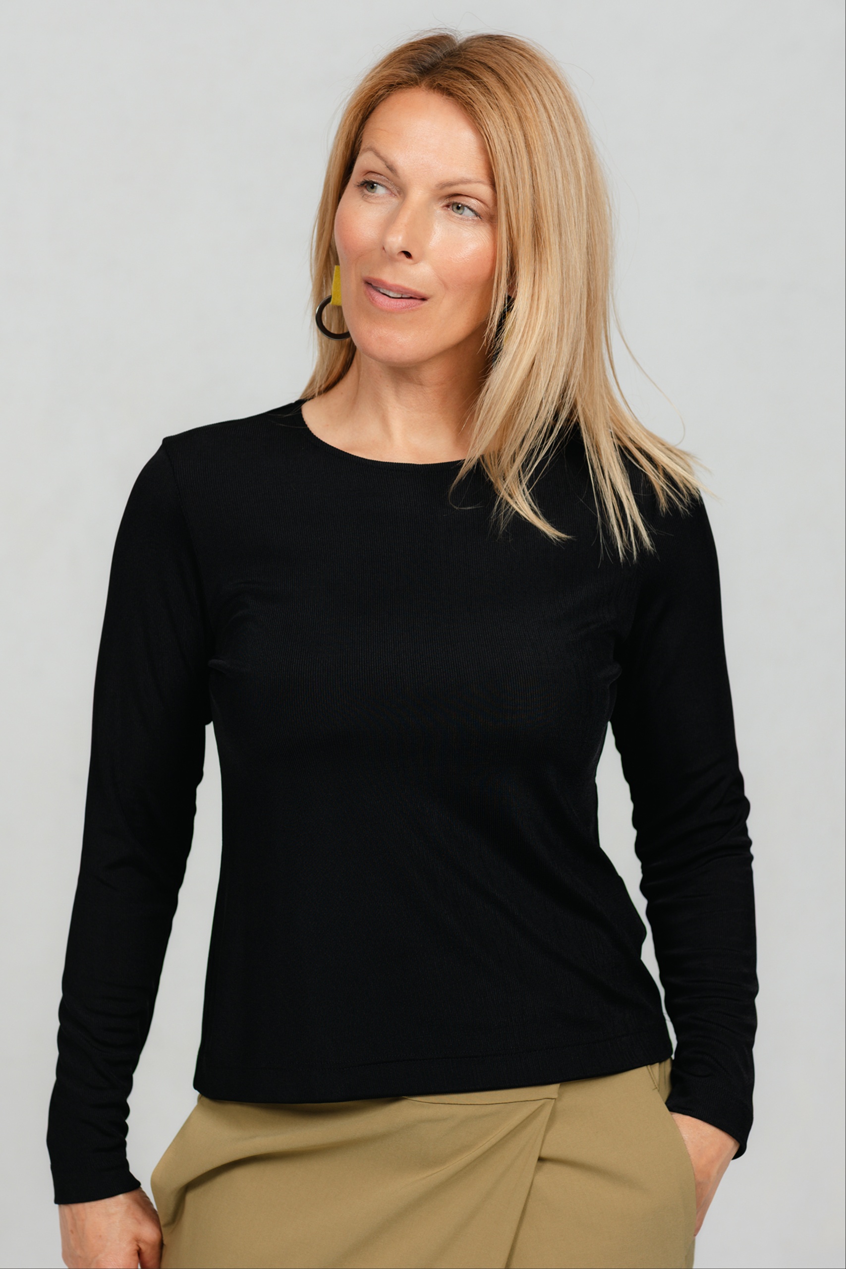 Pitkähihainen T-paita, joka on todellinen vaatekaapin perusvaate. Ylellinen ribbineulos tekee siitä todellisen suosikkisi mihin tahansa asuun. Suora leikkaus tekee siitä yksinkertaisen mutta erittäin monipuolisen – täydellisen kerrospukeutumiseen tai yksinään käytettäväksi. Yhdistä se suosikkihousuihisi tai -hameeseesi, ja olet valmis päivään, olitpa sitten toimistossa, kotona tai kaupungilla.