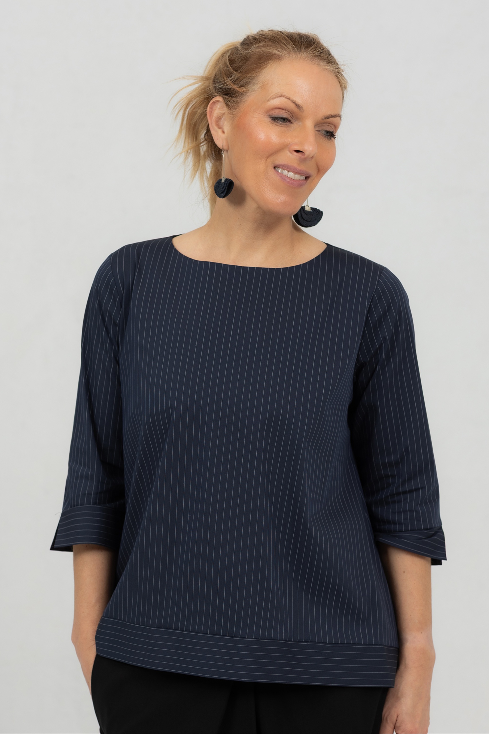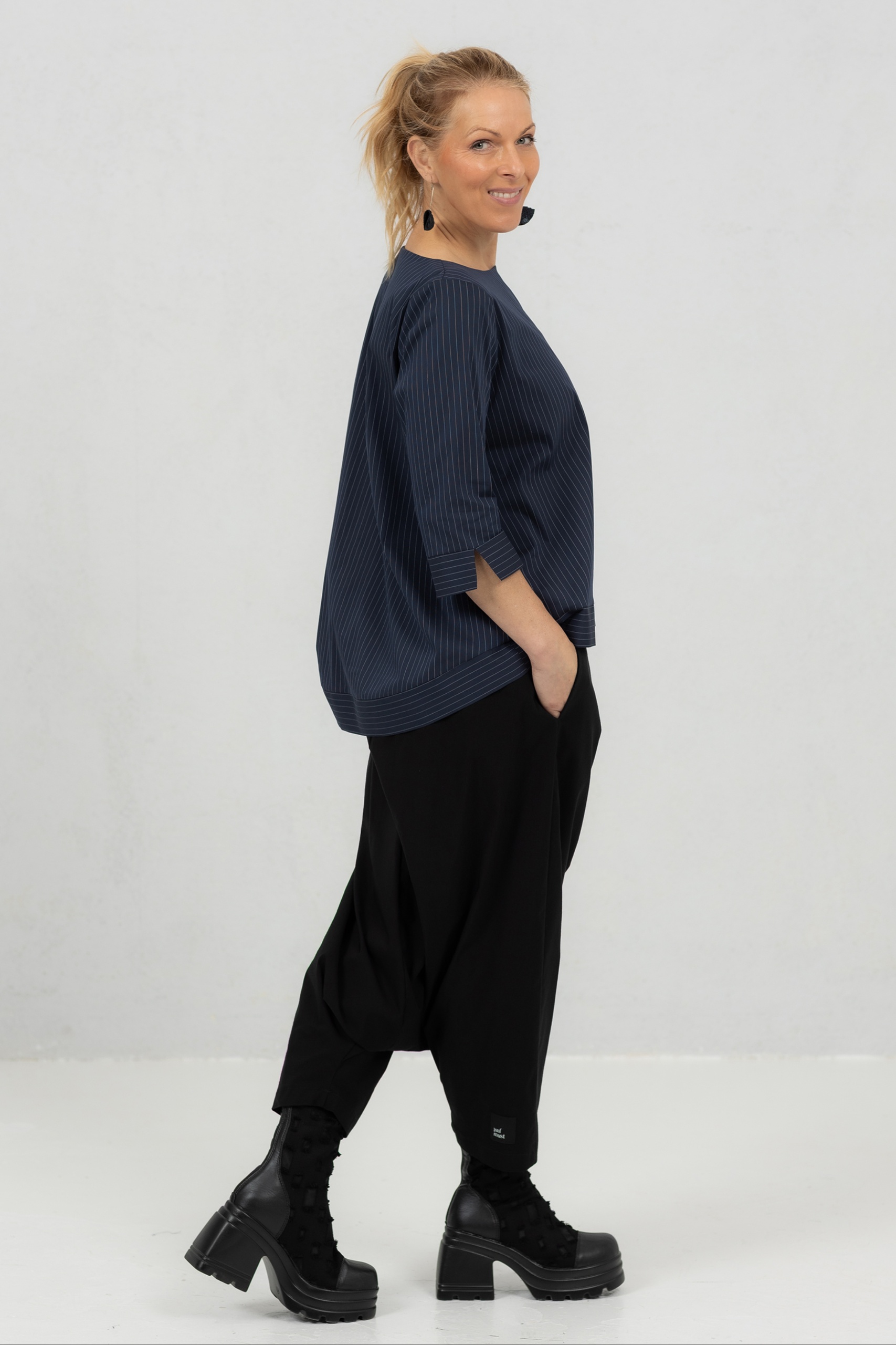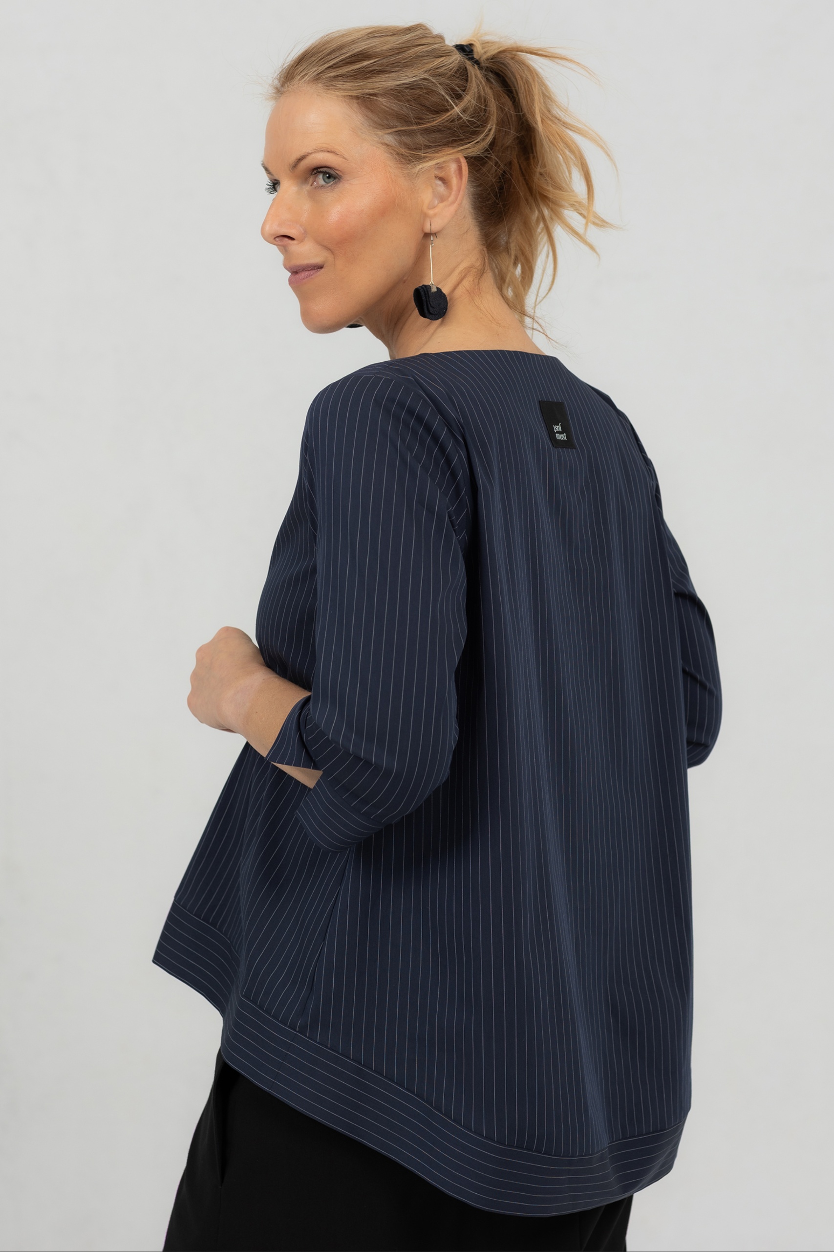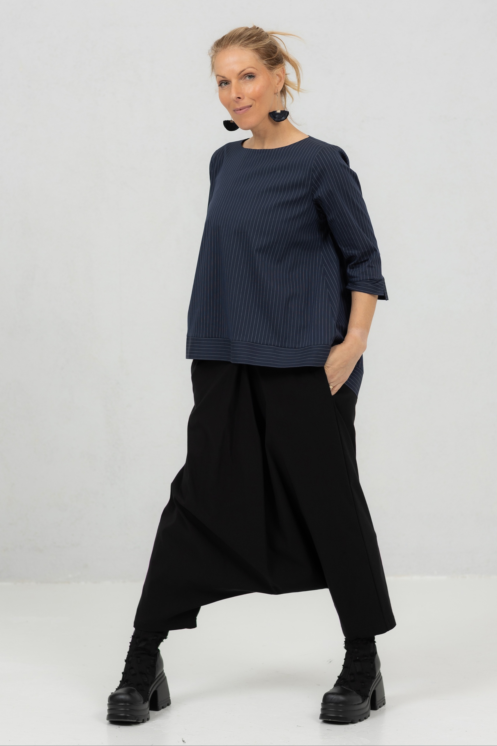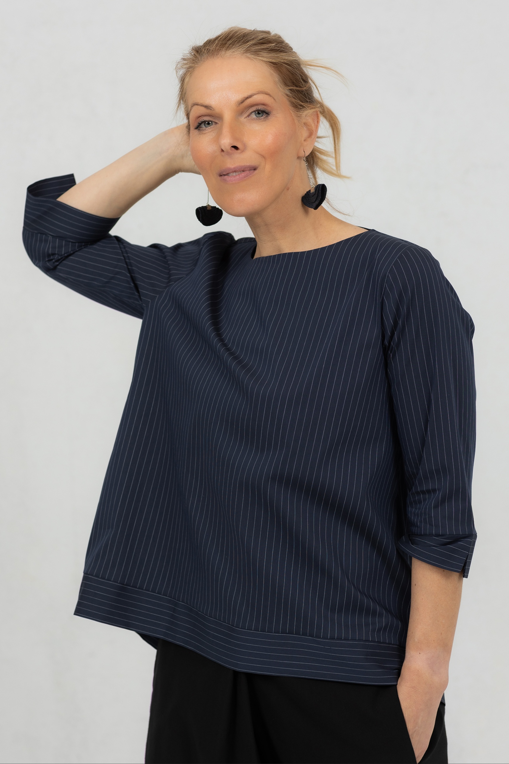 Anata on mukavuutta ja tyyliä silmällä pitäen suunniteltu pusero. Tämä yksinkertainen mutta silmiinpistävä pusero on valmistettu korkealaatuisesta puuvillasta, johon on lisätty hieman elastaania, jotta se on mukava ja joustava päällä. Anata-pusero erottuu edukseen pitkän takapuolensa ansiosta, joka lisää eleganssia tähän yksinkertaiseen puseroon ilman liioittelua. Anata-puserossa on pitkät 3/4-hihat, jotka lisäävät tyyliä mukavuuteen ja luovat naisellisen siluetin. Tämä pusero on tyylikäs seuralainen joka päivään, ja se auttaa sinua tuntemaan olosi vapaaksi ja itsevarmaksi. Erinomainen valinta naisille, jotka arvostavat ajattomia vaatteita, jotka ovat yhtä toiminnallisia kuin kauniita. Olipa kyseessä kiireinen työpäivä tai rentouttava viikonloppu.