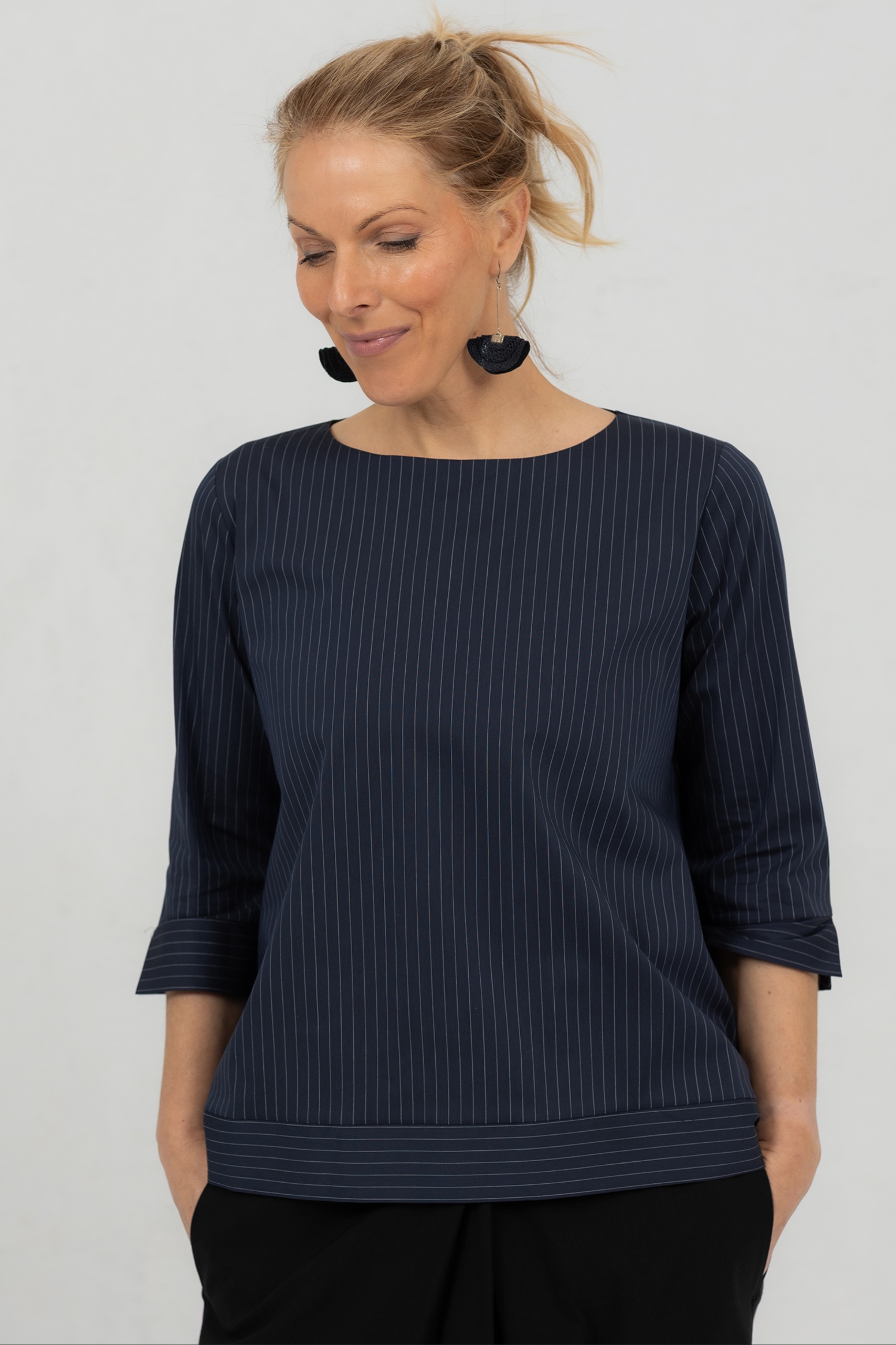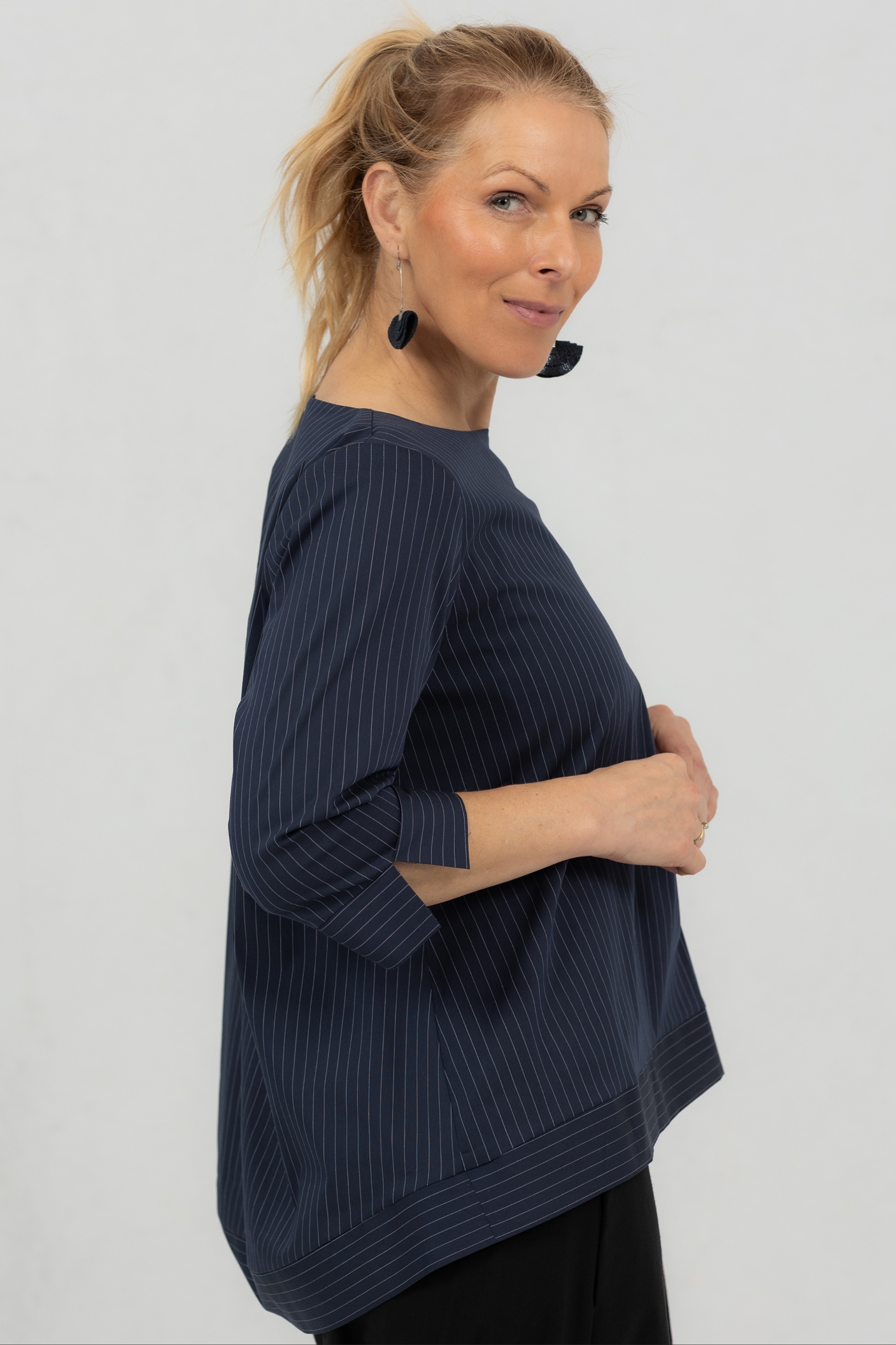 Väljä minimalistinen pusero Anata, tummansininen raidallinen