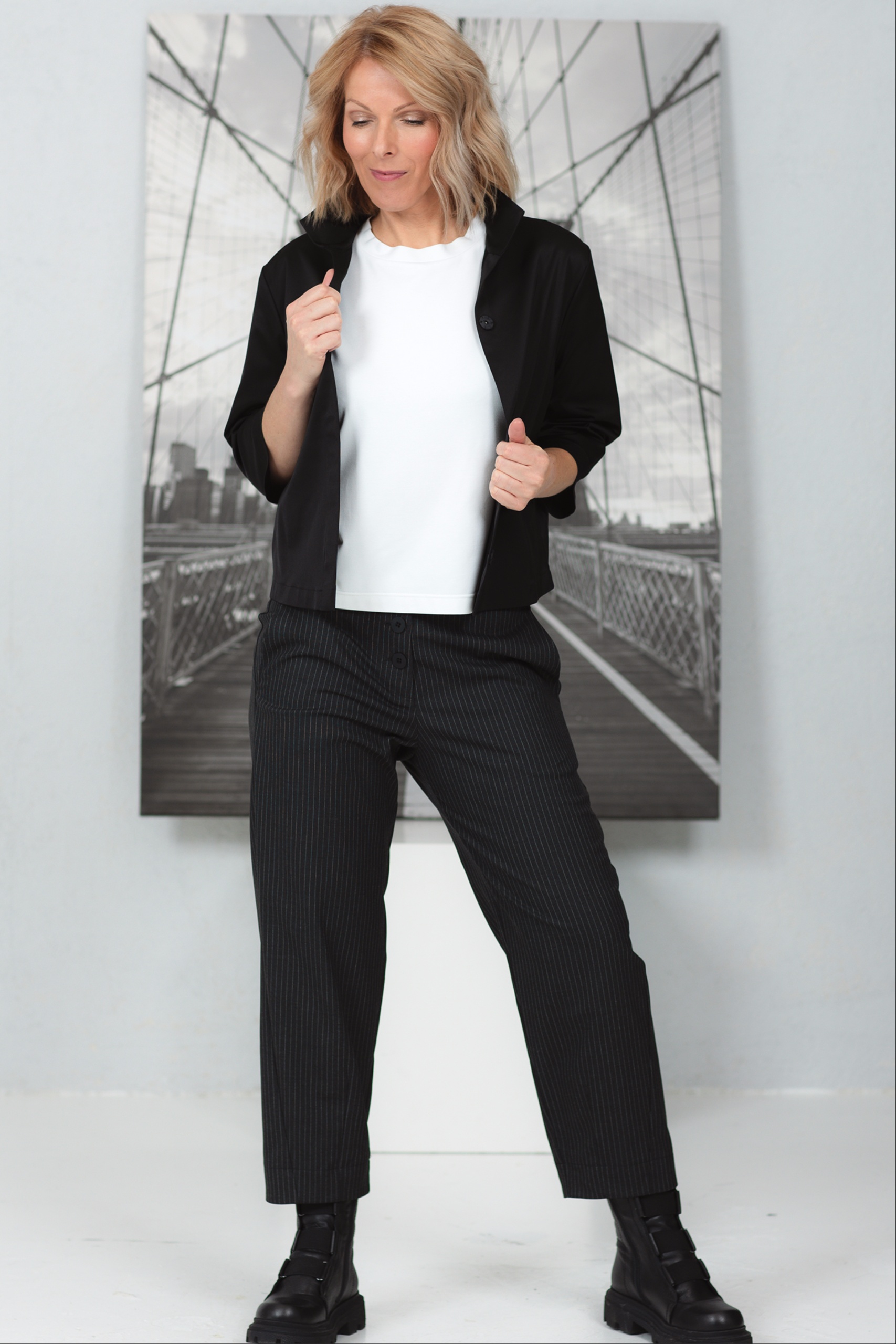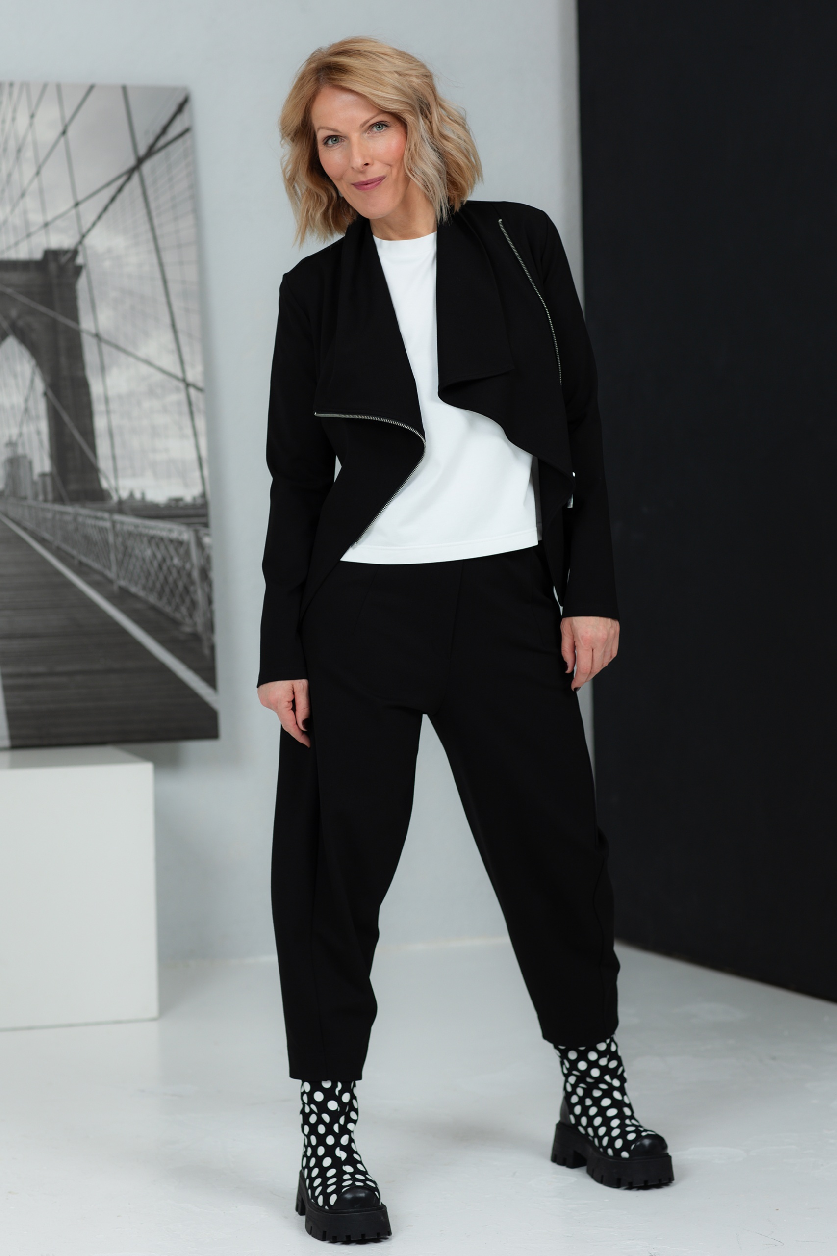 Tämä on ihanteellinen sekoitus kankaan koostumukseen, jossa yhdistyvät mukavuus, kestävyys ja joustavuus, jolloin syntyy kaunis ja käytännöllinen kangas jokapäiväiseen käyttöön. Viskoosi lisää kankaaseen pehmeyttä ja silkkistä tuntumaa, mikä tekee siitä ihanteellisen materiaalin kaikkeen mukavista housuista elegantteihin mekkoihin. Polyamidi takaa paremman kulutuskestävyyden ja erinomaisen muodonpitävyyden, minkä ansiosta vaate säilyttää ulkonäkönsä ja rakenteensa pidempään. Elastaani antaa kankaalle joustavuutta, jolloin vaate venyy ja muotoutuu kehon mukaan, tarjoten mukavan ja urheilullisen istuvuuden ilman rajoituksia.