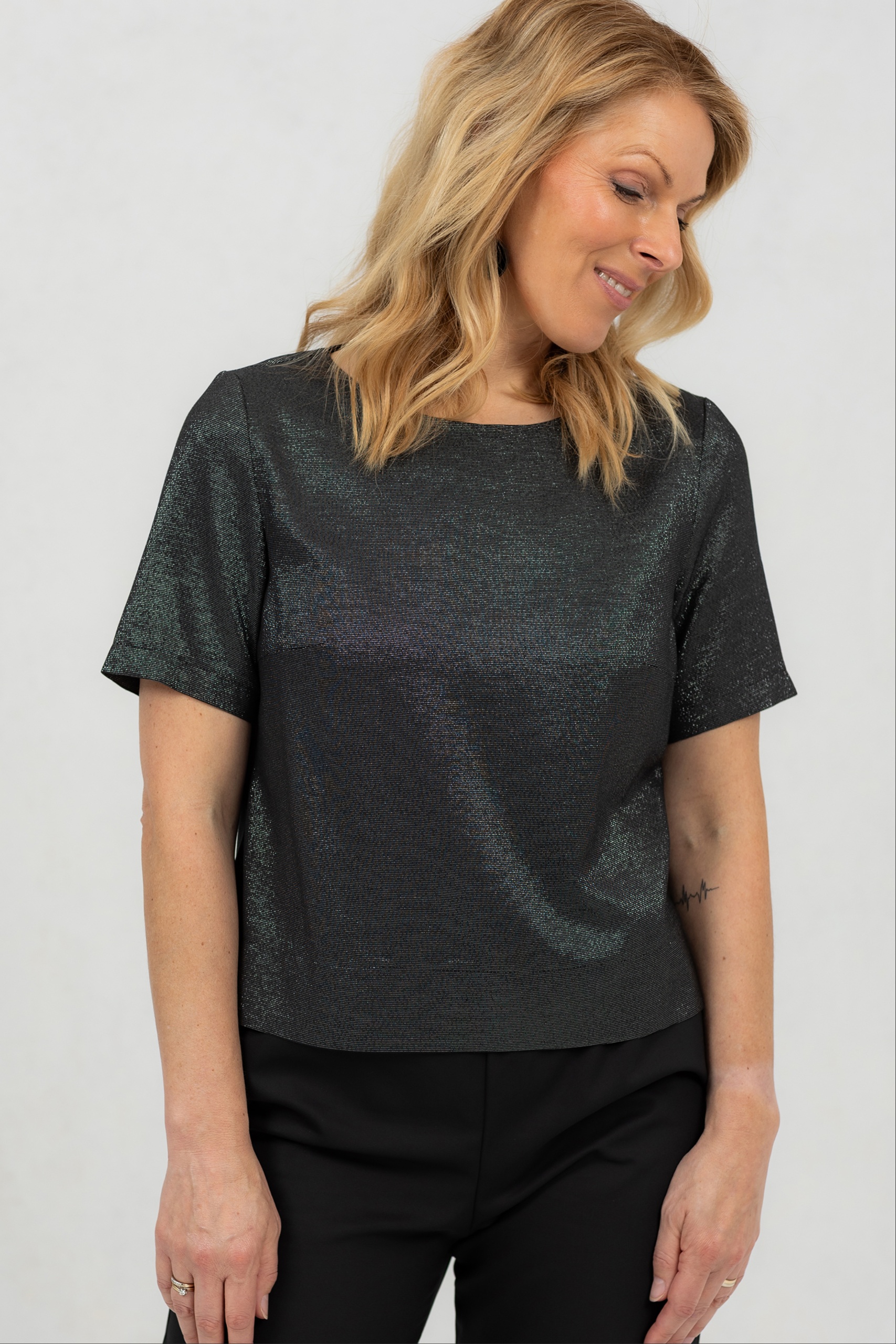 T-paita, joka vie minimalistisen tyylin uudelle tasolle. Tämä klassisen leikkauksen paita on valmistettu pehmeästä, hengittävästä viskoosikankaasta, joka takaa äärimmäisen mukavuuden käytettäessä. Sopii hyvin farkkujen, housujen tai hameiden kanssa – mahdollisuudet ovat rajattomat! Yksinkertainen mutta tyylikäs T-paita, joka ei koskaan mene muodista.