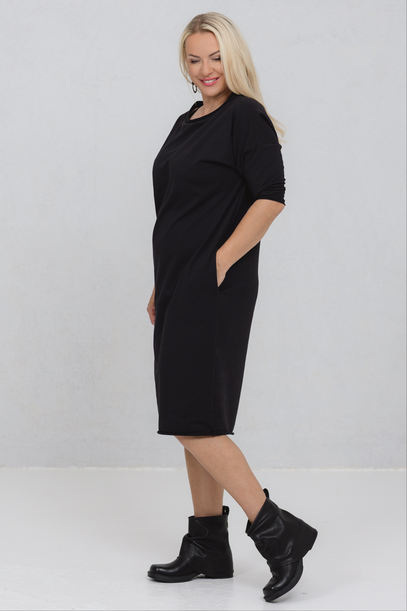 Benri on JustMusta-brändin ensimmäinen mekko, joka on suunniteltu yksinkertaisuutta, tyylikkyyttä ja mukavuutta silmällä pitäen. Se on täydellinen valinta jokapäiväiseen käyttöön, sillä se on väljä ja antaa liikkumavapautta. Mekko on valmistettu pehmeästä, ihoystävällisestä puuvillajerseystä, joka on mukava pitää päällä koko päivän. 3/4-hihat ja selkeä siluetti antavat sille minimalistisen mutta vahvan luonteen. Helma ja hihansuut on jätetty viimeistelemättömiksi.