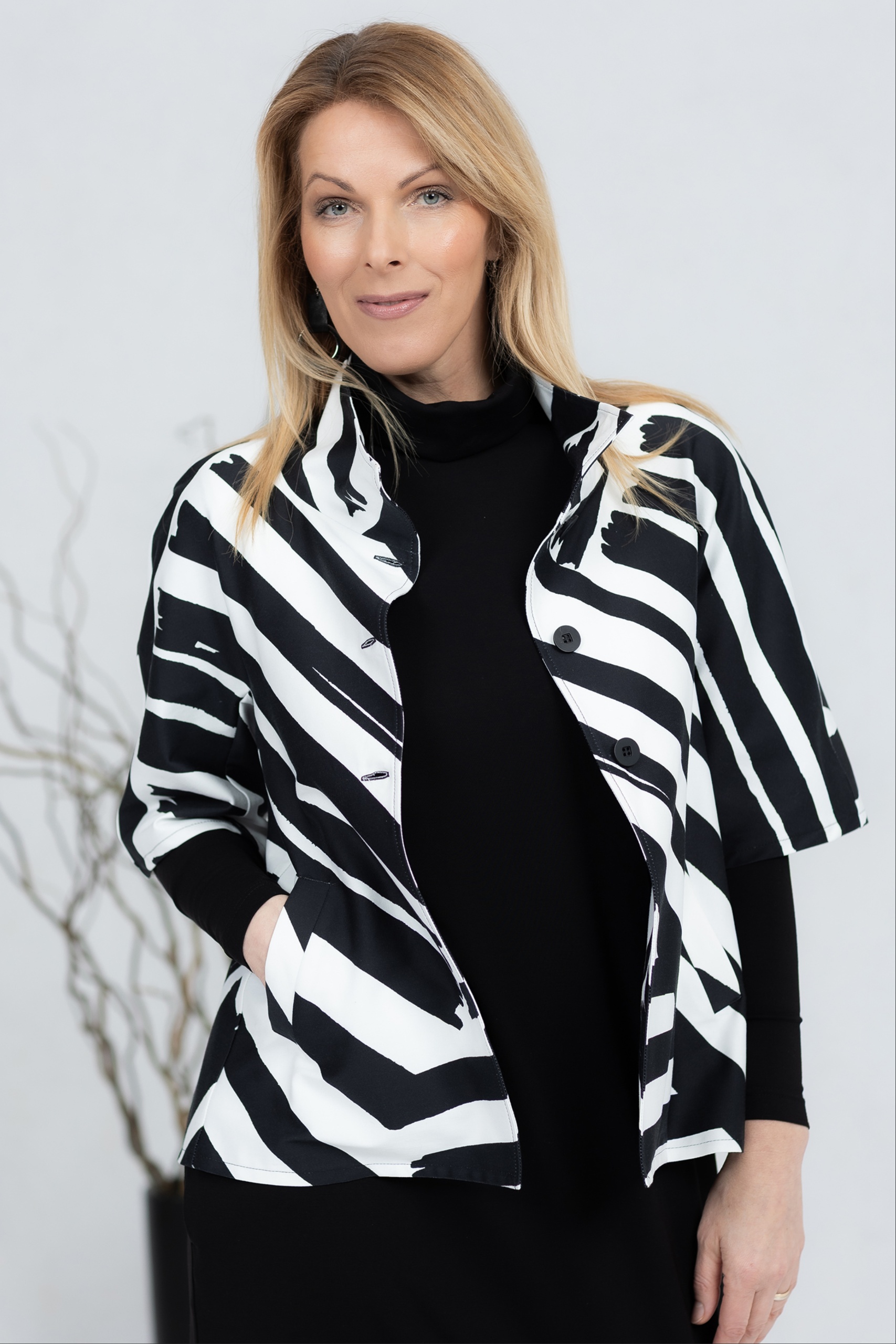 Yotaka, väljä ja kevyt takki, musta ja valkoinen